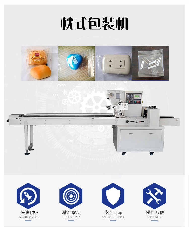 1.枕式包裝機(jī)是目前國(guó)內(nèi)新型的自動(dòng)連續(xù)收縮 包裝設(shè)備,采用石英遠(yuǎn)紅外管加熱,節(jié)電高效(節(jié)電15%以上);